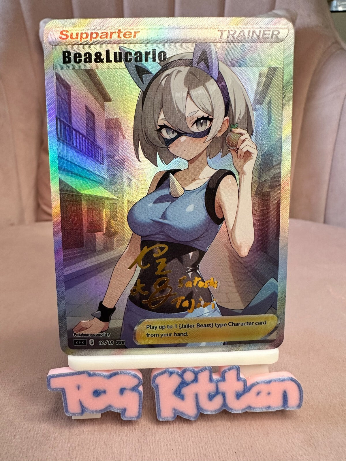 *CUSTOM* Bea & Lucario Trainer Cosplay Handmade Textured Holo Art TCGKITTEN