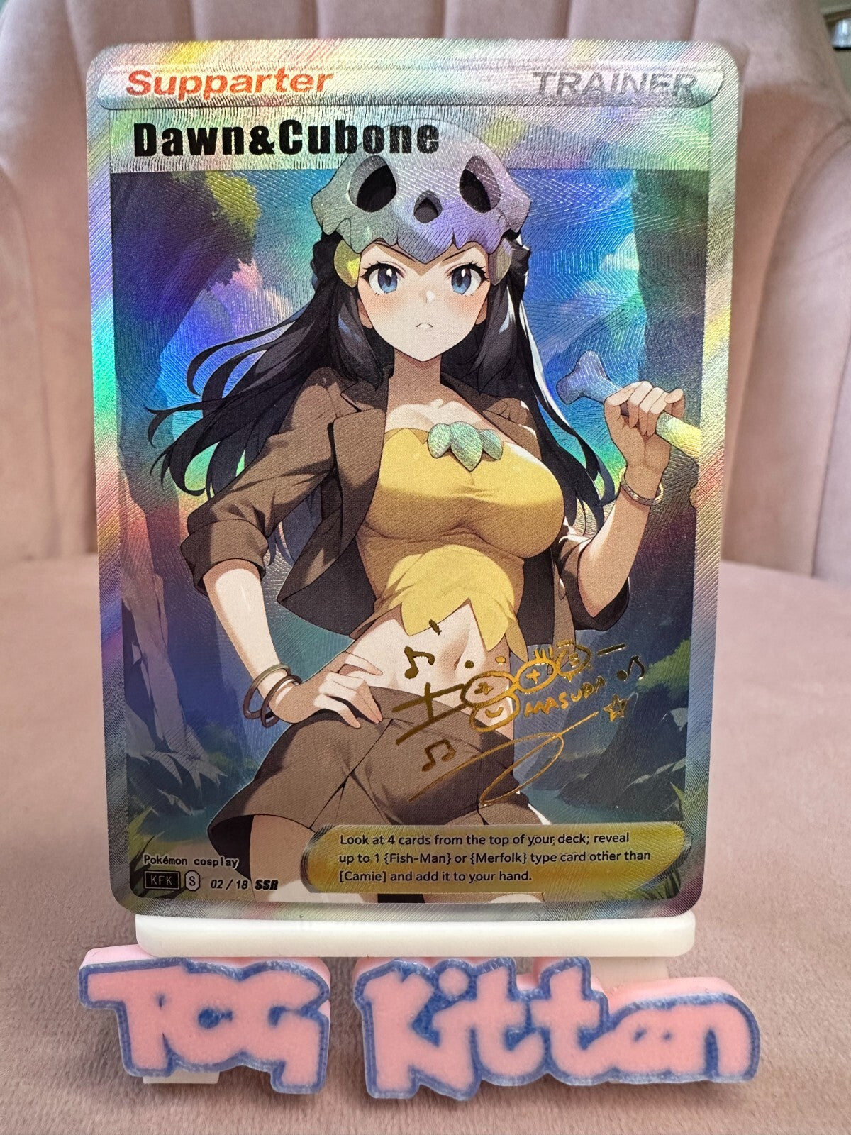 *CUSTOM* Dawn & Cubone Trainer Cosplay Handmade Textured Holo Art TCGKITTEN