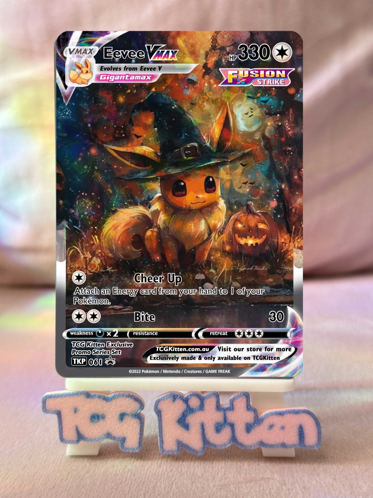*CUSTOM* Eevee VMAX TKP061 Halloween Ice Holo Handmade Proxy Card TCGKITTEN