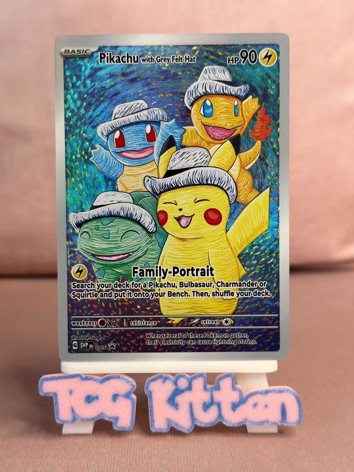 *CUSTOM* Kanto Starters with Grey Felt Hat Handmade Textured Art TCGKITTEN