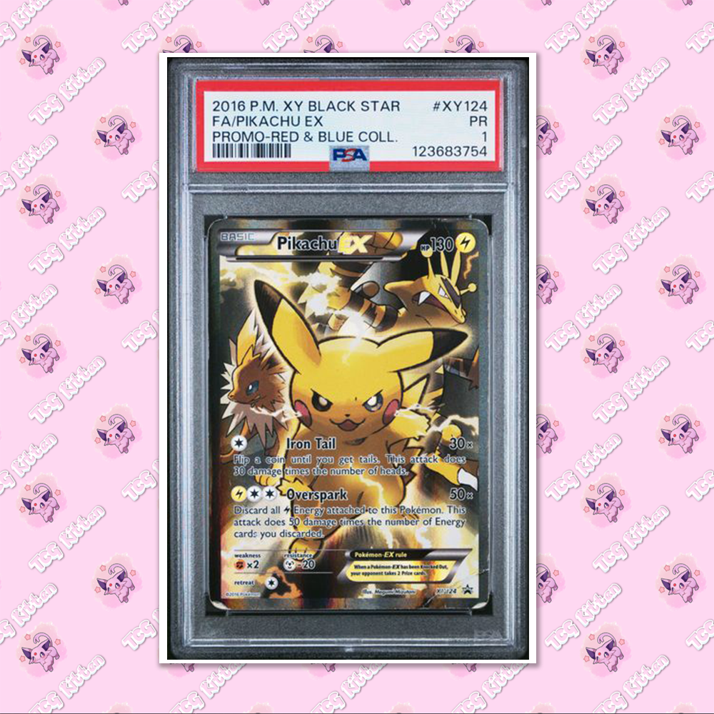 PSA 1 Pikachu EX XY124 Black Star Promo 2016 Pikachu EX Red & Blue TCGKITTEN