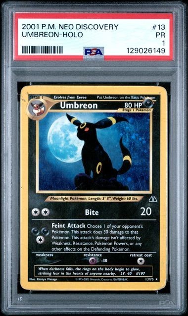 PSA 1 Umbreon 13/75 Neo Discovery Holo Ultra Rare Unlimited 'B' TCGKITTEN