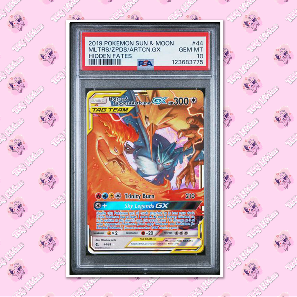 PSA 10 Moltres, Zapdos & Articuno GX 44/68 Hidden Fates Tag Team TCGKITTEN