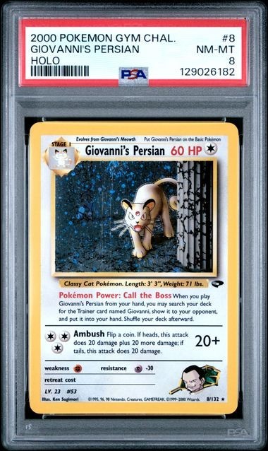 PSA 8 Giovanni's Persian 8/132 Holo Gym Challenge TCGKITTEN